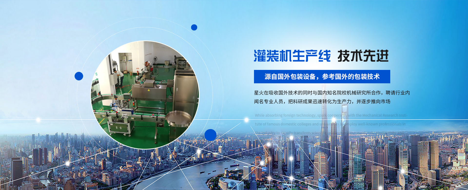 鄭州星火包裝機械有限公司是一家集科研、生產(chǎn)、銷售、服務(wù)于一體的高新科技企業(yè),公司現(xiàn)有員工100多人,是一家從事食品、制藥、化工灌裝機、灌裝生產(chǎn)線、無人化智能包裝生成線的專業(yè)制造廠家。星火人秉承“誠信、責(zé)任、服務(wù)、發(fā)展”的經(jīng)營宗旨,以“提高企業(yè)包裝效率”為企業(yè)使命;以“科技創(chuàng)新”引導(dǎo)企業(yè)的經(jīng)營與發(fā)展思路,并以企業(yè)文化建設(shè)的成效來促進品牌的發(fā)展。